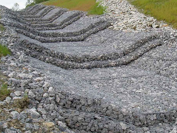 雷諾護墊也叫石籠護墊,格賓護墊,是指由機編雙絞合六邊形金屬網面構成的厚度遠小於長度和寬度的墊形工程構件。雷諾護墊中裝入塊石等填充料後連接成一體,成爲主要用於水利堤防 、岸坡、海曼等的防沖刷結構,具有柔性、對地基适應性的優點。