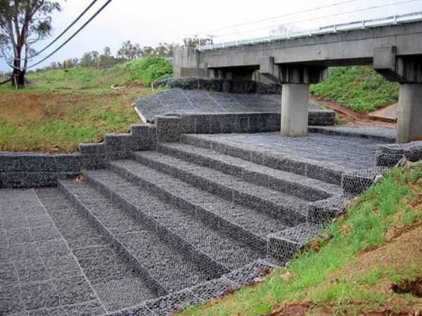 雷諾護墊是指由機編雙絞合六邊形金屬網面構成的厚度遠小於長度和寬度的墊形工程構件,其中裝入塊石等填充料後連接成一體,成爲主要用於水利堤防、岸坡、海曼等的防沖刷結構,具有柔性、對地基适應性的優點。